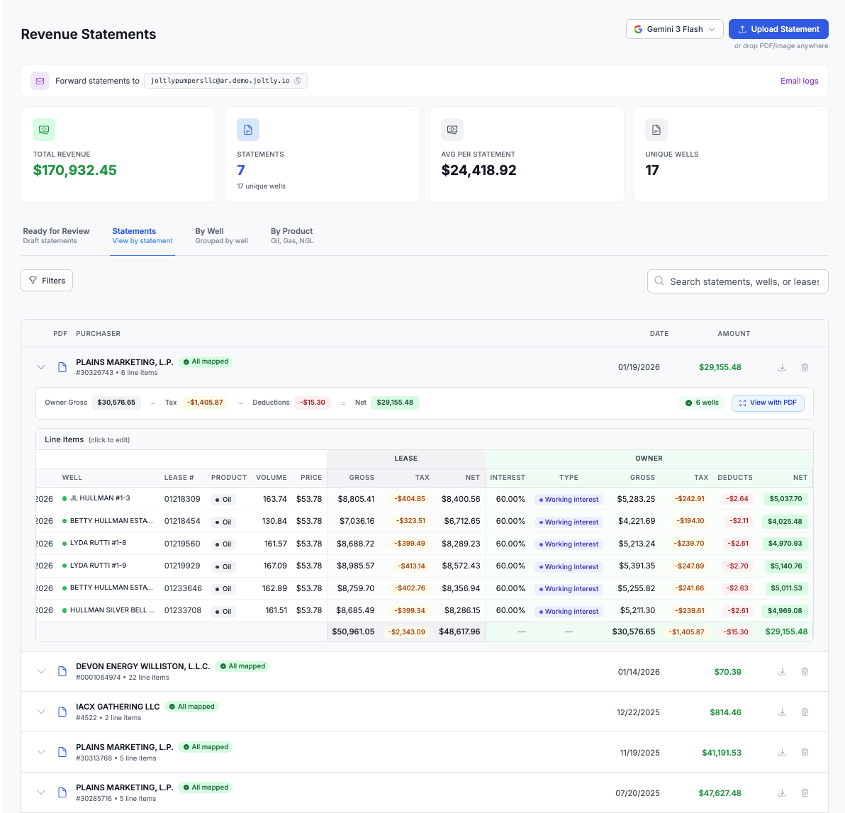 Use AIÂ to code out the chart of accounts data, well decks, revenue and line item descriptions. Reduce manual entry by 95%.